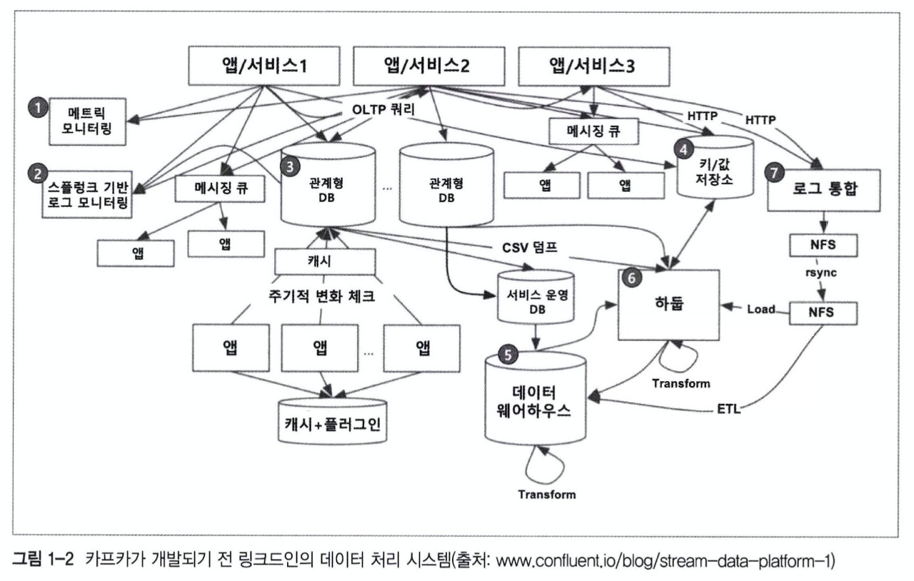 kafka는 링크드인에서 근무하던 제이 크렙스(현 confluent ceo), 준 라오, 네하 나크헤데가 링크드인 서비스 내에서 발생하는 이슈들을 해결하기 위해 만들었습니다.