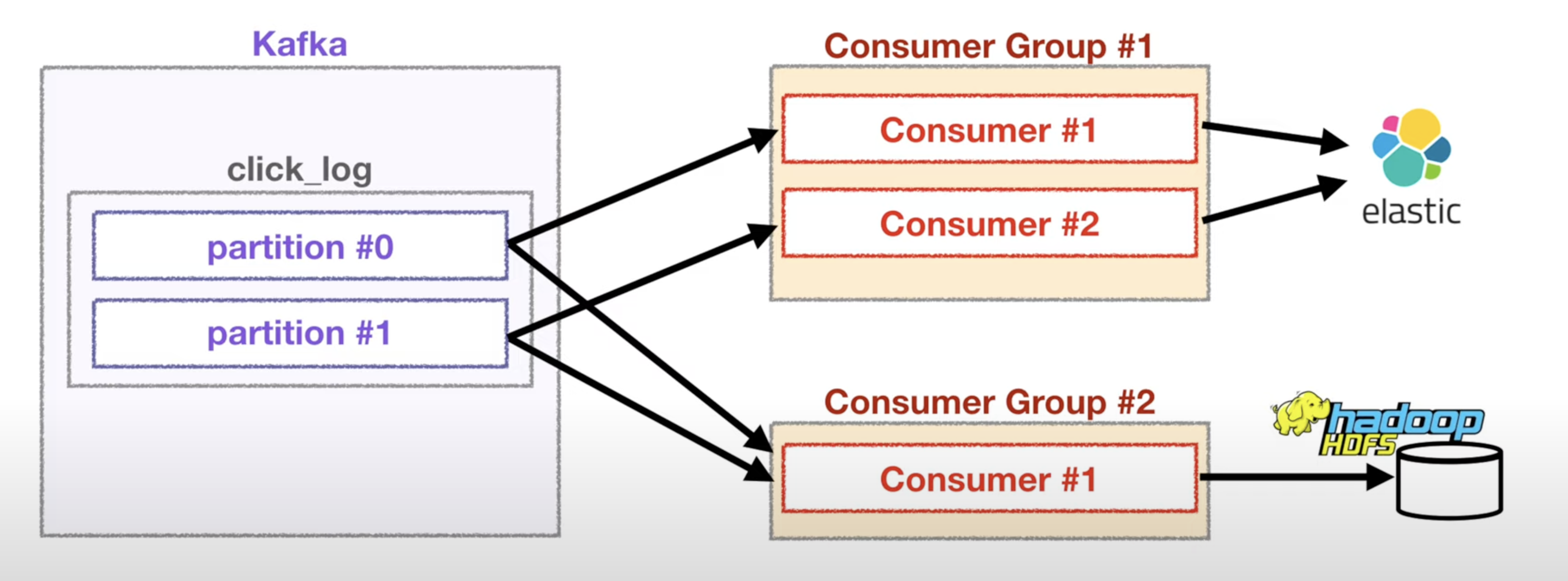 하지만 서로 다른 consumer 그룹의 경우 partition도 여러 곳에 데이터를 줄 수 있습니다.