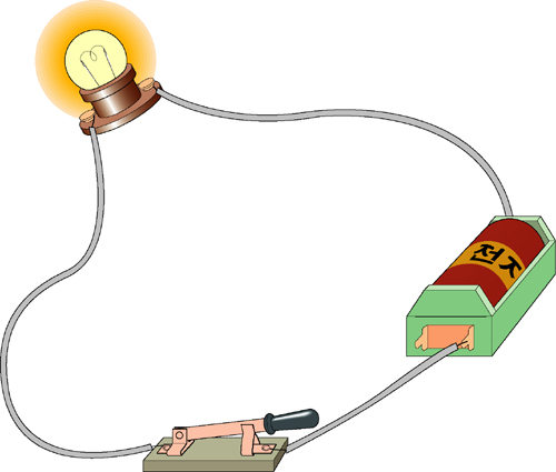 전지, 전구, 스위치, 전선으로만 이루어진 가장 기초적인 회로그림과 함께 설명하는데, 전기가 일어나는 방식에 대해 이야기합니다.