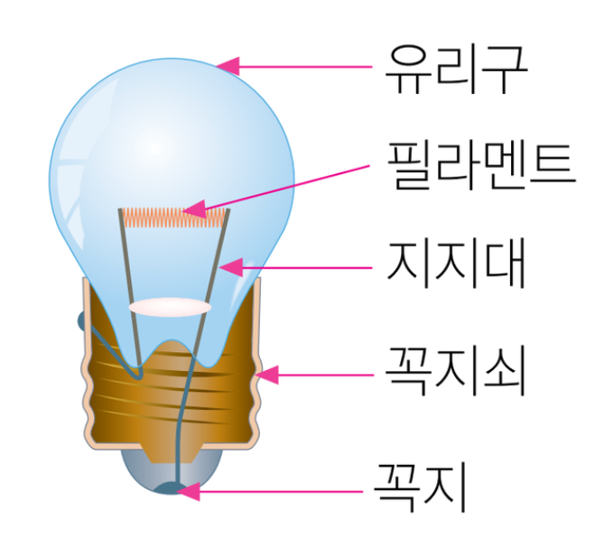 다음은 전구입니다. 에디슨이 발명한 전구의 구조는 아래와 같죠.