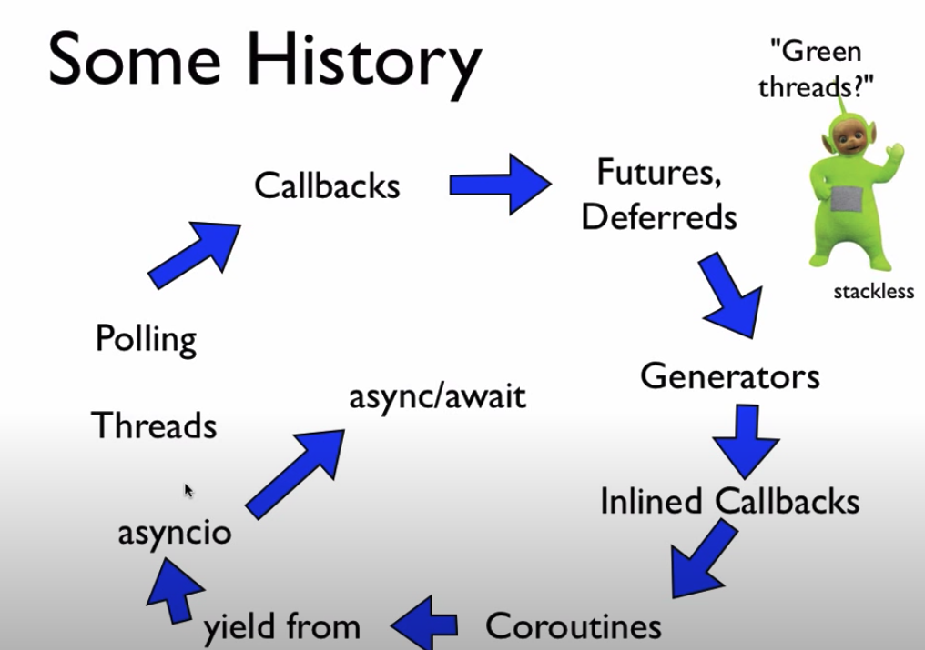 이번 글은 파이썬의 비동기 처리에 관한글입니다. 파이썬의 비동기처리는 제네레이터 기반 코루틴과 네이티브 코루틴이있고 파이썬 버전마다 비동기가 계속 발전되어 바뀌는 부분이 많은데 이 글에선 3.9+ 이상 버전 기준으로 설명 드리겠습니다. GIL 파이썬의 비동기에 대해 알아보기 전에 GIL에 대해 먼저 알고있으셔야 합니다. GIL이란 파이썬이 한번에 하나의 스레드만(프로세스 아님) 실행 시킬수 있도록하는 키의 개념입니다. 위 사진에서 보이듯이 쓰레드1에서 쓰레드2로 넘어 갈때 쓰레드1이 GIL을 풀어주고 쓰레드2가 GIL 키를 acquire해가는 모습이죠. 이 때문에 파이썬은 멀티 스레드를 사용시 오히려 성능이 안나온다(thread context switching 비용때문에)고 하는 것이죠. 참고로 멀티 스..